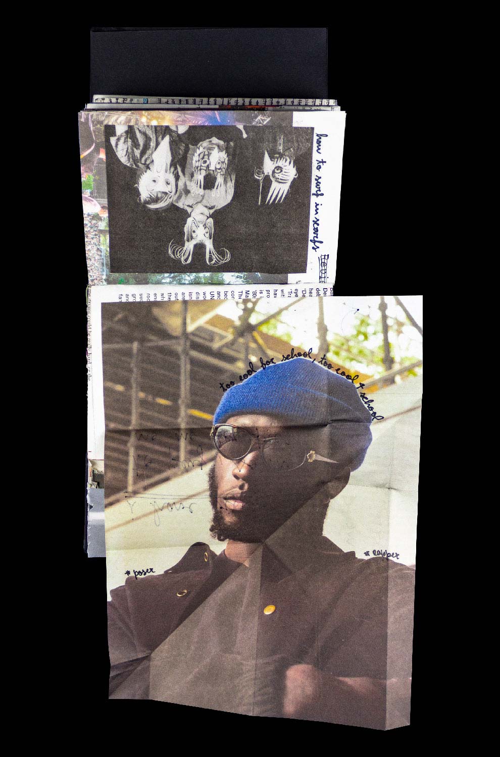 based on a spontaneous selection and collage of inspirations and visual attractions. Secondly, these